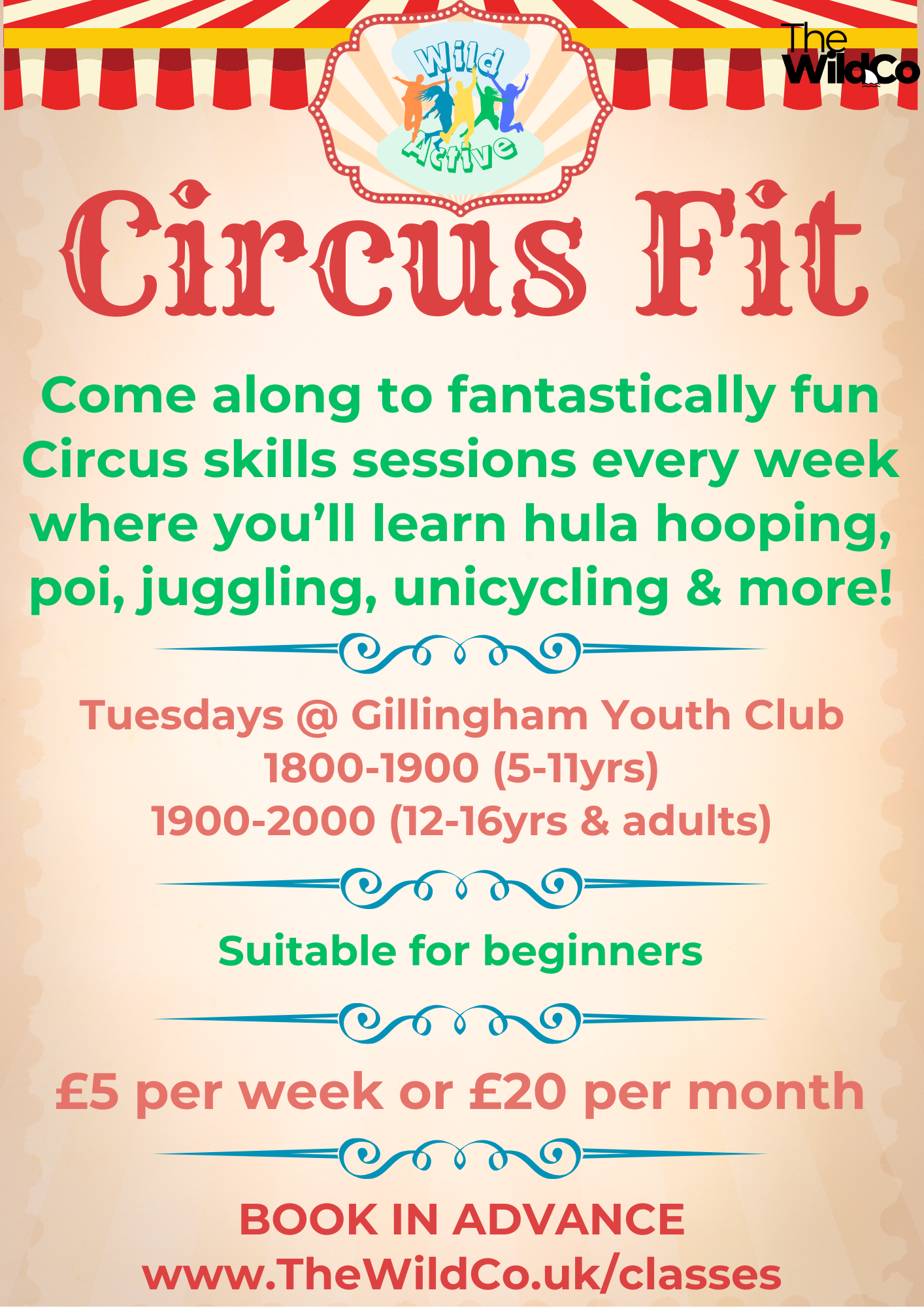 Circus Fit![]() | Come along to fantastically fun Circus skills sessions every week where you’ll learn hula hooping, poi, juggling, unicycling & more! Suitable for absolute beginners. (back in 2026) |